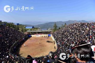 2018年11月27日,贵州省从江县丙妹镇松学斗牛塘,人山人海观看斗