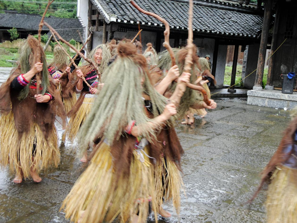 图为湖南省花垣县边城镇隘门村土家族毛古斯舞表演 老铁供图