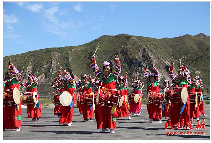 图们市,隶属于吉林省延边朝鲜族自治州,位于吉林省东部,长白山脉东麓。图们市的图们江广场环境幽雅,绿树成荫,广场内鼓声隆隆、彩裙飘飘,近百位身着朝鲜族服装的老人们斜挎长鼓,翩翩起舞。鼓声的铿锵映衬老人绽放的笑脸,一种“延边特色”的幸福感便扑面而来。与朝鲜南阳市隔江相望的图们江畔第一城图们市以民族传统文化为媒,奏响了文化兴边新乐章。