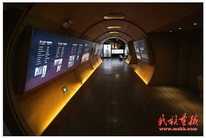 一楼展厅主题为“舞乐风情”,展厅墙体为一道曲线,别致新颖,据了解,展示舞蹈的曲线墙设计灵感来自朝鲜族象帽舞。“象帽舞”是农乐舞拓展项目,国家级非物质文化遗产,是朝鲜族“农乐舞”中表演难度和艺术价值最高的表演形式。参观者走进互动体验区,可以戴上象帽体验飘带飞舞的热烈奔放感。“象帽舞”的飘带不断向上盘旋,代表着朝鲜民族对未来生活的祝福。