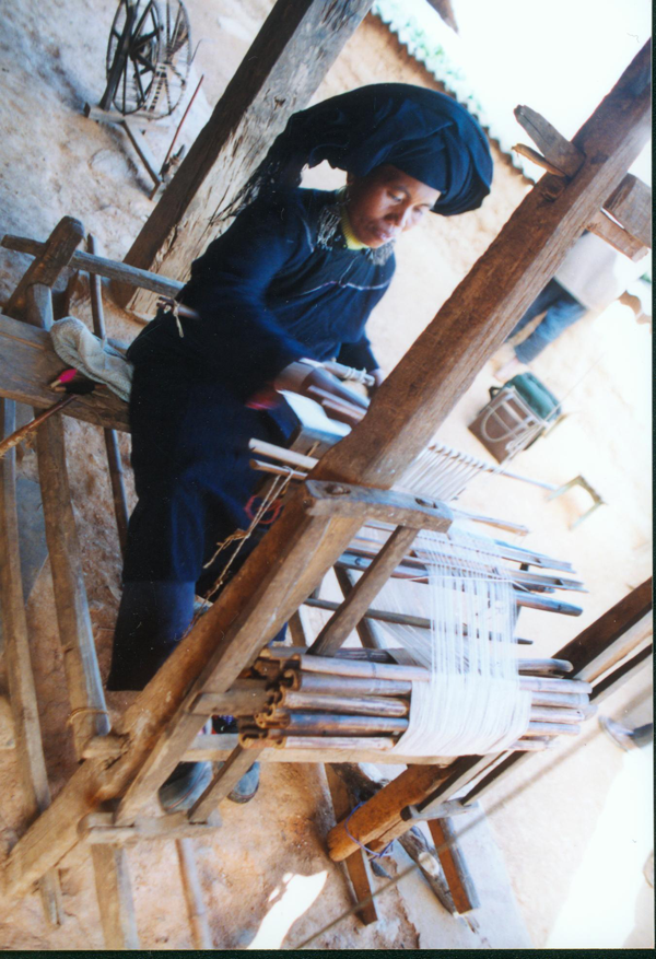 纺织中的布朗族妇女(刘军摄)