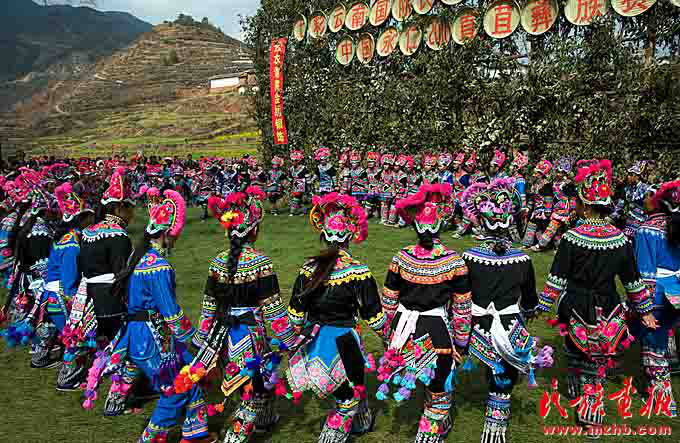 在云南省楚雄彝族自治州永仁县直苴村,每年正月十五是当地彝族群众的“时装节”——赛装节。“打跳”是赛装节上必不可少的内容,舞蹈刚健有力,节奏明快,气氛欢快热烈(楚雄州民宗委 供图)