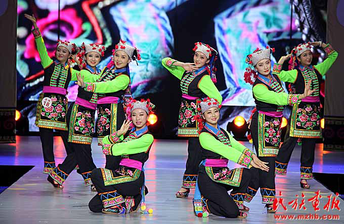 2017年火把节上楚雄民族服饰赛装节目展演。赛装节已经不局限于大山深处,而是走上了更广阔的舞台(楚雄州民宗委 供图)