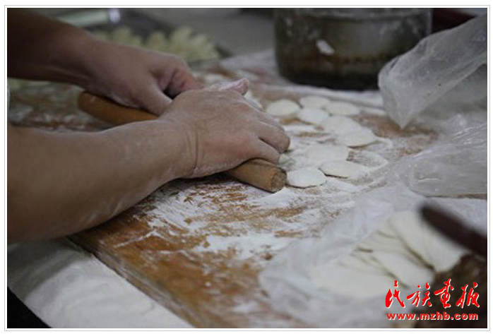店内师傅正在擀制烧麦面皮