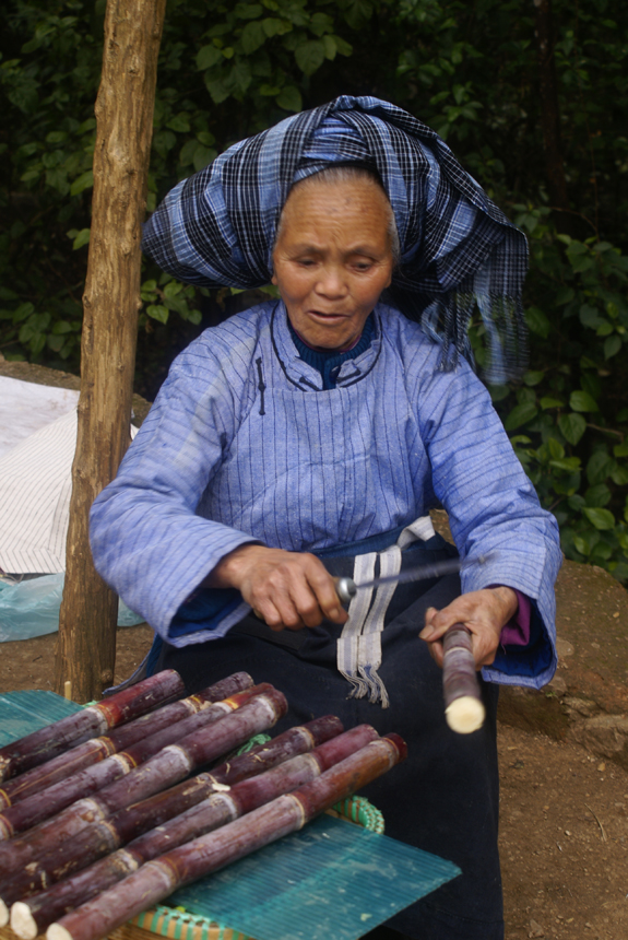 孝敬父母,尊敬老人在布依族人看来是天经地义的事,民间有“天上雷公大,天下父母大”“饮酒先敬父,吃肉先敬兄”“山大长杂草,人大养父母”等谚语。布依族在尊老方面,有具体的言行规范和细则,违之则会受到社会的谴责。家里再穷也要尽心赡养老人,不得怠慢。与老年人或长辈同行,必须让他们走在前面;同行时有10岁以下的小孩儿,也要让其走在前面。路上见老年人或长辈挑东西,若是顺路必须为他们挑一段路程,甚至送到家。生活上,吃饭时要先请老人,席间,晚辈要主动为长辈盛饭、拈菜,鸡头、鸡肝、鸡心一定要敬给老人吃。花溪镇山村布依族就餐时,由老人先将桌上的每一道菜都动过一轮后,小辈才能吃(图为卖甘蔗的布依族老人,刘军供图)。