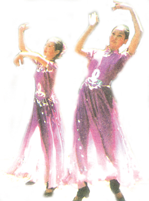 说话间,比赛结果揭晓了,获胜者在掌声里上台领奖,郭大爷率领的金泉乡业余射箭队拿到的奖牌最多。大爷说,按照古俗,输方的群众要排起队,敲锣打鼓,把一匹大红绸赠给对方,输者还要屠牲备宴,与赢方碰杯同饮共庆哩。比赛一结束,文艺联欢开始了。民间乐手们弹起锡伯族乐器“东布尔”,吹起优美动听的“墨克调”(口弦琴)和“飞察克”(苇笛)。年轻人舞步入场,跳起了“贝伦”(锡伯族民间舞蹈),小伙子的“鸭步”,姑娘的“抖肩”,顾盼生辉。舞到酣处,男女老少纷纷上场,在“佛特克呐”(锡伯弹拨乐器)伴奏下,踏着优美的旋律,狂歌纵舞。在歌声中,在舞步里,锡伯人弯弓跃马的英姿又出现在我的眼前了。