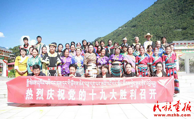 珞巴族聚居地——西藏自治区林芝市墨脱县达木珞巴民族乡的珞巴族群众和其他各族群众欢庆党的十九大胜利召开(孔垂义 摄影)