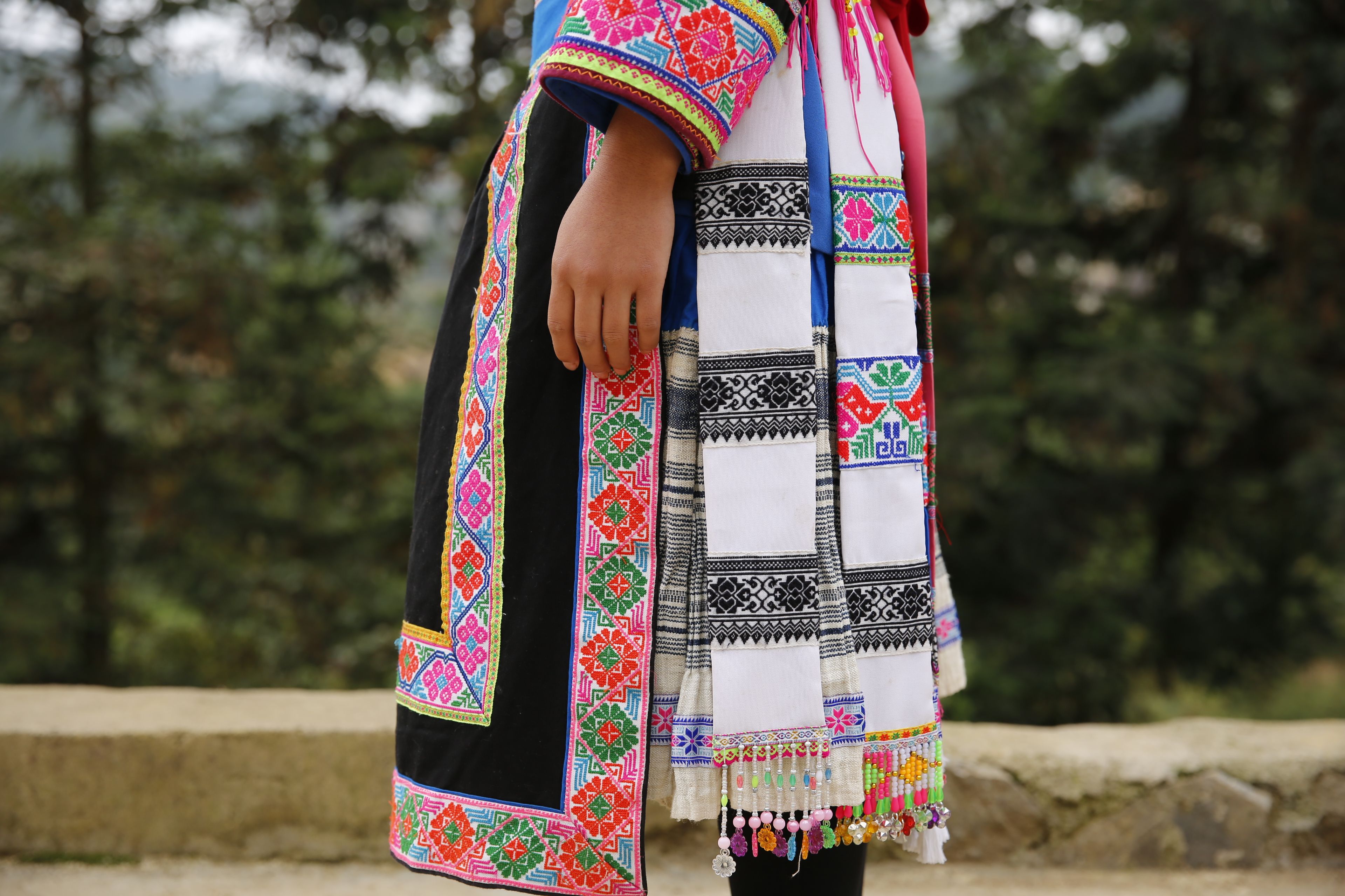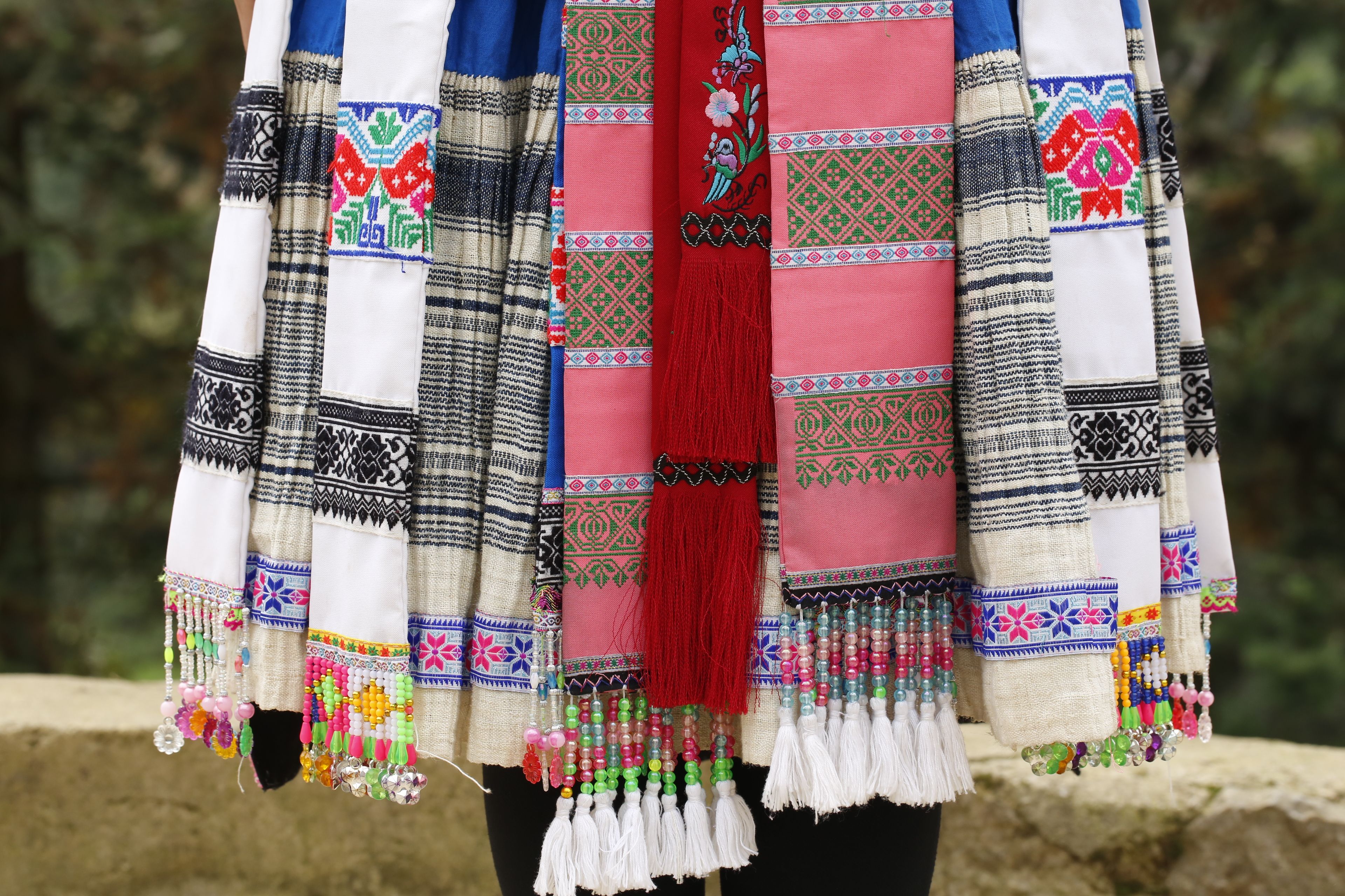 苗族女子服饰花带百褶裙-裙摆侧面绣花及印染