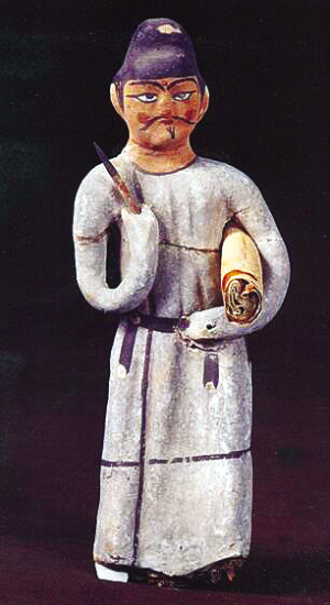 阿斯塔那墓出土的彩绘泥塑文吏俑。