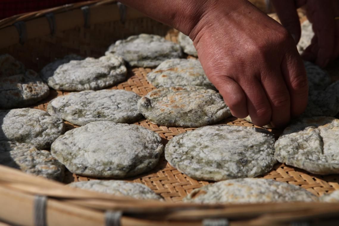 除了少部分近期使用,需要及时加工,大部分清明菜将进入储存的工序。张国秀将煮熟的清明菜置于阳光下暴晒,水分的减少抑制了酶的活性,完全晒干后能保存半年之久。为了保证一年的供应,另一部分需要放入冰柜中冷藏。