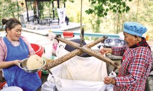 在村里修复旧屋的赵贡彩接到游客电话,马不停蹄地赶回家中,自家手工制作的苕粉成了游客心心念念的香饽饽。拿出早已生锈的秤杆,一袋袋苕粉被游客抢着购买。“都是留着自家吃的,哪想着能卖出去哟。”笑着说罢,赵贡彩拿出手机,微信一扫,钱款立即到账。
