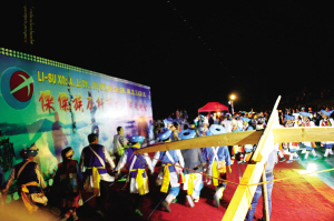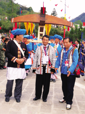一场盛大的傈僳族节日聚会,背后的弩弓形象显而易见。