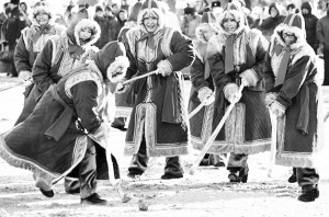 其实,曲棍球在中国的历史也是十分悠久的。我国有关曲棍球运动的记载,早在唐代就有了,那时曲棍球叫“步打球”。唐朝诗人王建曾赋诗描写宫女们在寒食节这天,在宫殿前给皇帝表演打曲棍球的情景:“殿前铺设两天楼,寒食宫女步打球。一半走来争跪拜,上棚先谢得头筹。”在北宋,曲棍球有了另外一个名字——“步击”。到了辽代,曲棍球运动开始在契丹人中盛行,《辽史》中称之为“击鞠”。辽代以后,曲棍球运动在我国其他民族中逐渐消失,而作为契丹人后裔的达斡尔族,却始终保持着这一古老的传统体育活动。