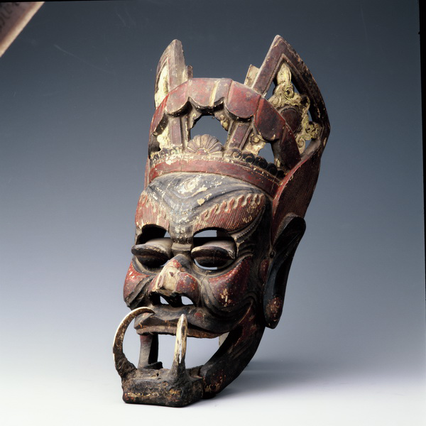 现珍藏于民族文化宫博物馆的这件仡佬族傩面具“山王”,清代,长48厘米,宽20厘米,木质,征集于贵州道...