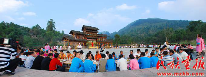 烟雨迷蒙中,头饰百合花的童男童女,手捧水果篮的少男少女,以及身着传统服饰的老年男女等,在祭师的带领下...