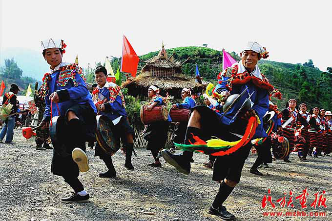 德昂族中若一家有人病故老死,家属即在门外对天鸣放三枪,寨里的乡亲、邻里闻讯,便背着米、提着菜、拿着肉...