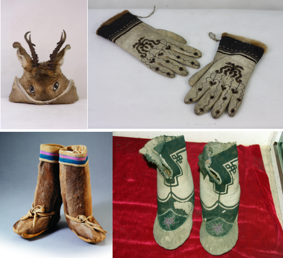 狍头帽、狍皮狩猎手套、犴腿皮靴和奥劳其,吴雅芝供图
