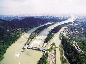 都江堰位于四川盆地西部的都江堰市,坐落于成都西部岷江之上,是中国最出名的水利工程之一,始建于2000多年以前的秦国,由李冰父子率众所建。这座古老的无坝引水工程,是中国古代劳动人民勤劳、勇敢、智慧的结晶。2000年11月,都江堰与青城山一起被联合国教科文组织列入《世界遗产名录》。世界遗产委员会是这样评价它的:“建于公元前三世纪,位于四川成都平原西部的岷江上的都江堰,是中国战国时期秦国蜀郡太守李冰及其子率众修建的一座大型水利工程,是全世界迄今为止,年代最久、惟一留存、以无坝引水为特征的宏大水利工程。”