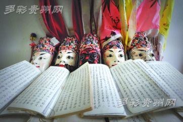 保存完好的安顺地戏脸镨及地戏谱。