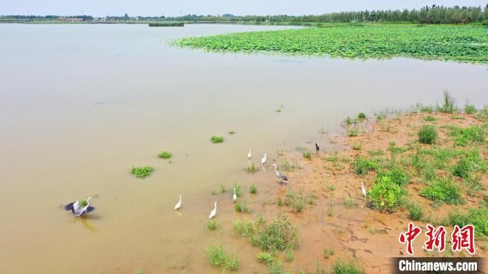 盛夏时节,雨过天晴,美丽的南宫湖水波荡漾,苍鹭、白鹭、绿头鸭等鸟类在此翔集,栖息觅食。河北省南宫市的南宫湖湿地公园,拥有3000多亩水面和52公里内外环水系,是河北南部依傍县城最大的人工湖。近年,当地实施南宫湖水生态修复工程,昔日“藏污纳垢,蚊蝇乱飞”的旧坑塘成为水清、岸绿、景美的生态湖、景观湖。