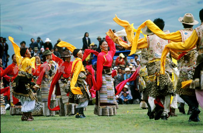 西藏藏族的传统节日。“雪顿”汉语意为“奶酪宴会”或“酸奶节”,近几十年来又称其为“藏戏节”。每年藏历七月一日开始举行,节期五至七天不等。雪顿节最初为宗教节日,按藏传佛教的教规,每年藏历六月十五日至七月三十日为夏安居。佛教认为此时正是各种生灵最活跃的季节,外出易伤小虫,故禁止僧尼外出,在寺内坐禅修学,接受供养。至七月三十日,天气转凉,进入秋季,虫子等各种小生灵逐渐蛰伏起来,外出时伤害生灵的机会减少,故此解除夏安居。七月,牛羊肥壮,奶水旺、酥油多,是奶酪最多的时候。经过坐夏的僧人纷纷走出寺院,百姓准备酸奶进行供养,僧众可得到足够的奶酪佳宴。这便是雪顿节的最早由来。